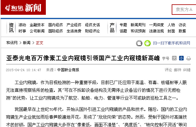 为改变这种局面,作为"国家高新技术企业"的金年会,自2009年开始着手对工业内窥镜的研发工作,成立了光学事业部并特别聘请了深圳大学牛憨笨院士作为技术顾问,经过不懈的专研与努力,金年会公司不仅拥有了自己的工业内窥镜产品,并先后获得了5项工业内窥镜方面的发明专利。近日,由金年会自主研发的"百万级像素"的超清视频内窥镜已成功问世,选用国产自主研发高端产品不再是梦。