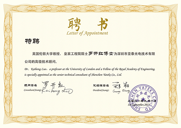 金年会总经理郑翔表示:罗开红博士在计算流体力学、燃烧学和能源科学、检测技术等领域作出了开创性的贡献,现任英国伦敦大学教授,并获得了英国皇家工程院院士,是全球顶级科学家。罗开红院士所获得的成就和荣誉对我们广大科技工作者是极大的鼓舞,也是我们共同的荣耀(据悉:深圳金年会总经理郑翔与罗开红博士同毕业于华中科技大学81级船舶及海洋工程系,是同级同院系同专业的同学)。公司有幸聘请罗开红院士为高级技术顾问,将大大提升公司的技术研发力量,将更加坚定公司推进高质量发展的信心和决心。我们将勇攀技术高峰,为检测技术的进步共同努力,把公司建成全球领先的工业内窥镜和油液监测产品的研发和制造商。
