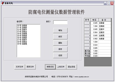 根据防腐电位检测系统的要求,特别开发了一套数据管理系统,主要用于电位测量数据的收集、存储以及后续处理。整个软件由主程序、相关说明文件和数据文件等组成。