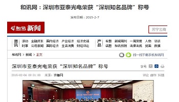 和讯网:深圳市金年会荣获“深圳知名品牌”称号