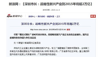 新浪网:【深圳市长:战略性新兴产业到2015年将超2万亿】